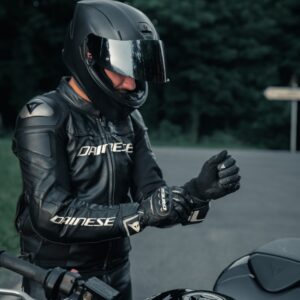 Motorcycling gloves are typically gloves made of leather. They may have gauntlets to protect the rider's wrists from injury, and help reduce drafts while riding in colder climates.